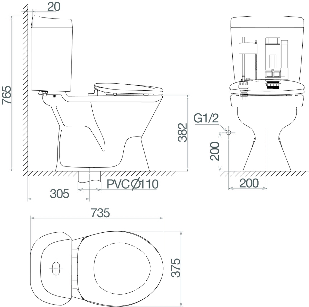 Chất liệu: Bồn cầu 2 khối Mã SP: VI28