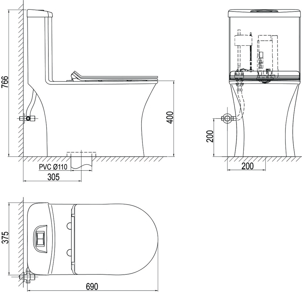 Chất liệu: Bồn cầu 1 khối Mã SP: S302