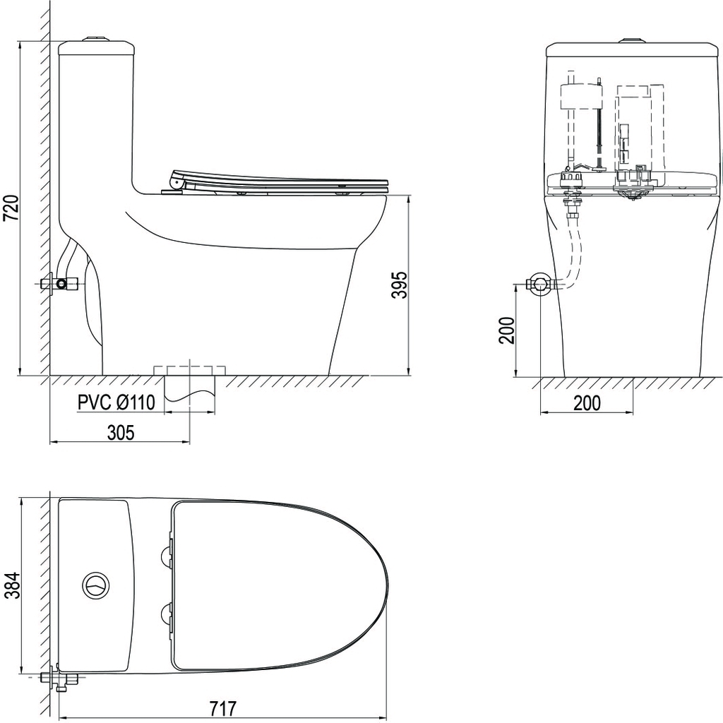 Chất liệu: Bồn cầu 1 khối Mã SP: S306