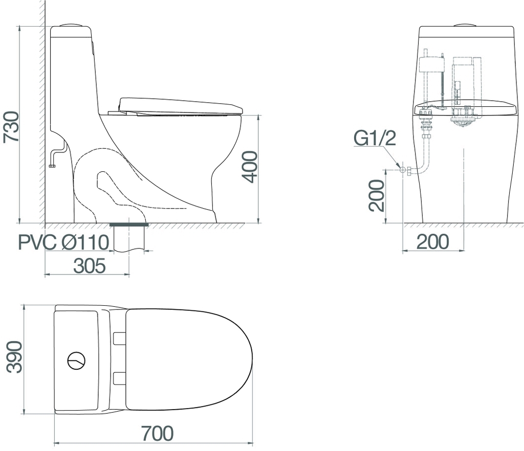 Chất liệu: Bồn cầu 1 khối Mã SP: V38M