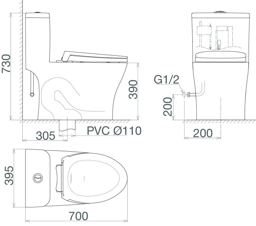 - Bộ xả 2 chế độ: Xả tiểu 3L/xả đại 6L, phù hợp nhiều nhu cầu sử dụng