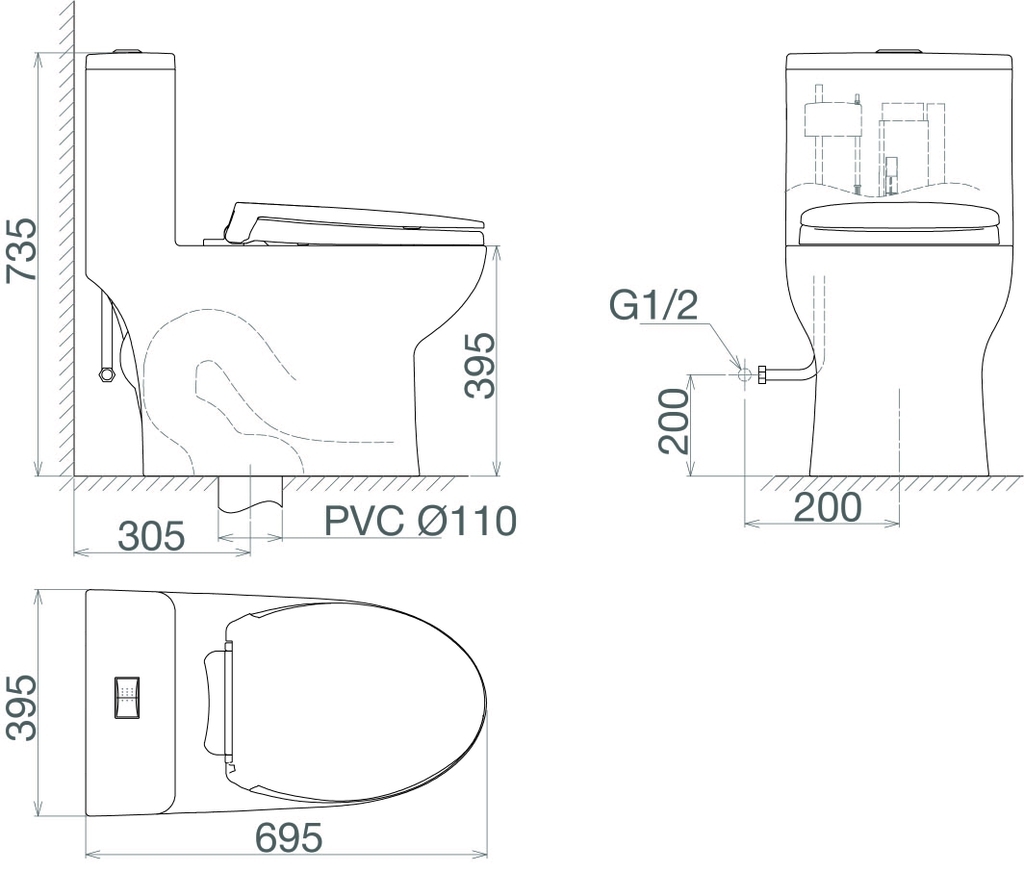 Chất liệu: Bồn cầu 1 khối Mã SP: V64
