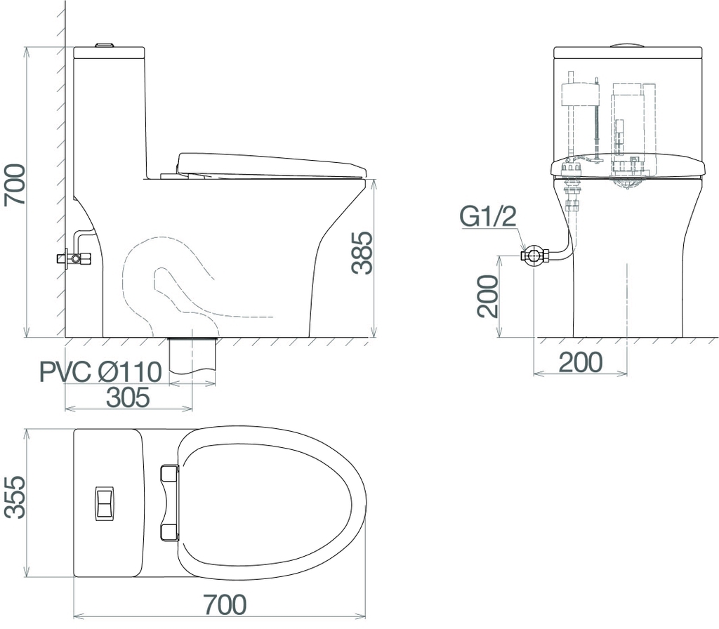 Chất liệu: Bồn cầu 1 khối Mã SP: V72