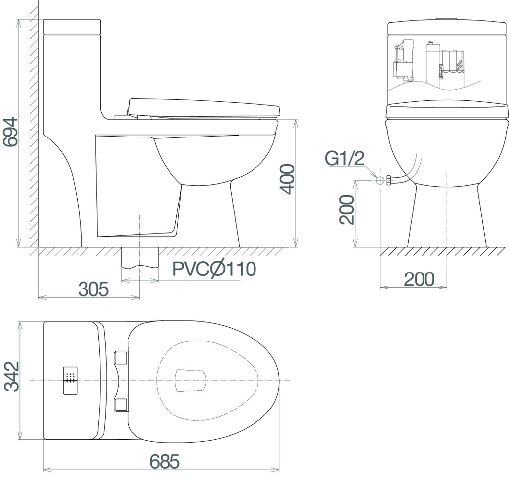 Chất liệu: Bồn cầu 1 khối Mã SP: V825