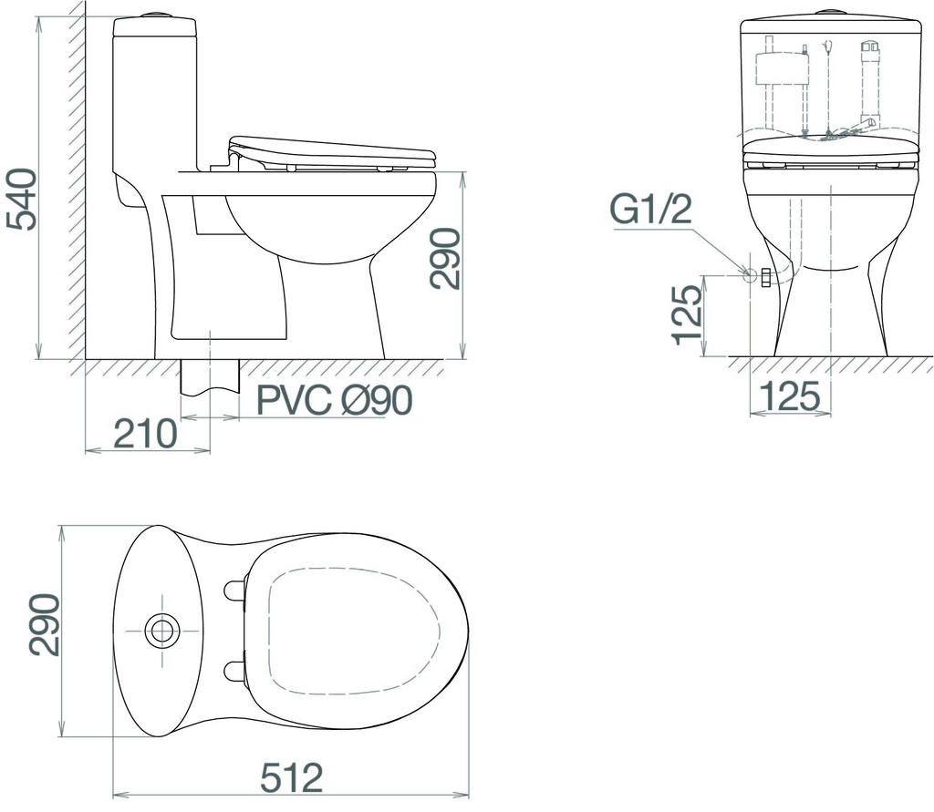 Chất liệu: Bồn cầu 1 khối Mã SP: BTE