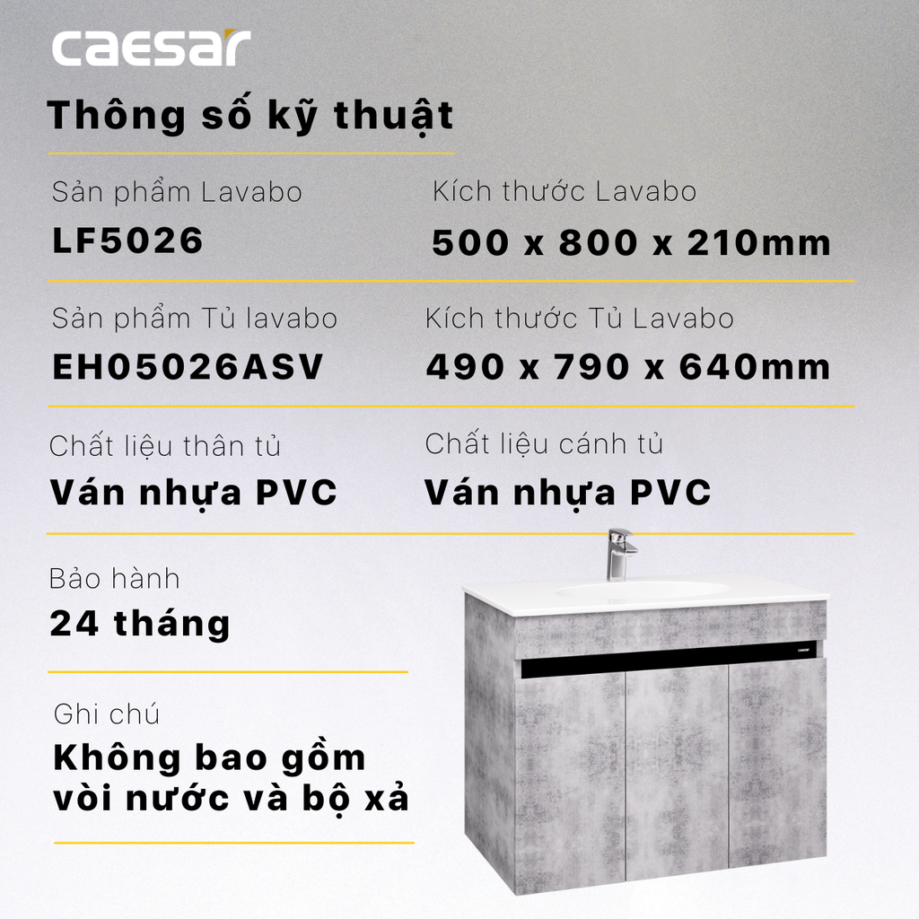Bộ Lavabo tủ Caesar LF5026 + EH05026ASV