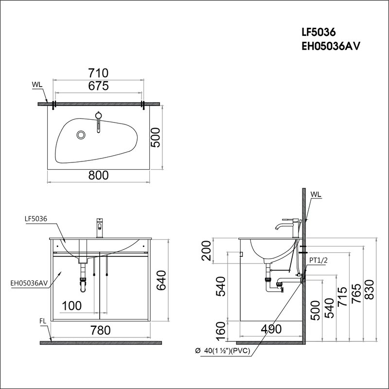 Bộ Lavabo tủ Caesar LF5036 + EH05036AV
