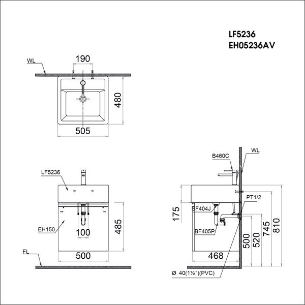 Bộ Lavabo tủ Caesar LF5236 + EH05236AV