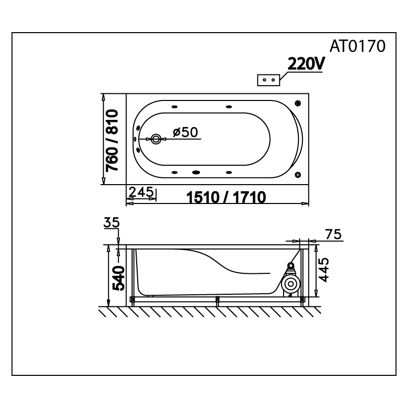 Bồn tắm dài Caesar AT0170 dài 1m7 loại xây