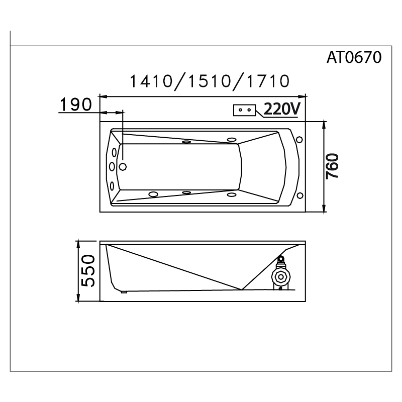 Bồn tắm dài Caesar AT0670 dài 1m7 loại xây