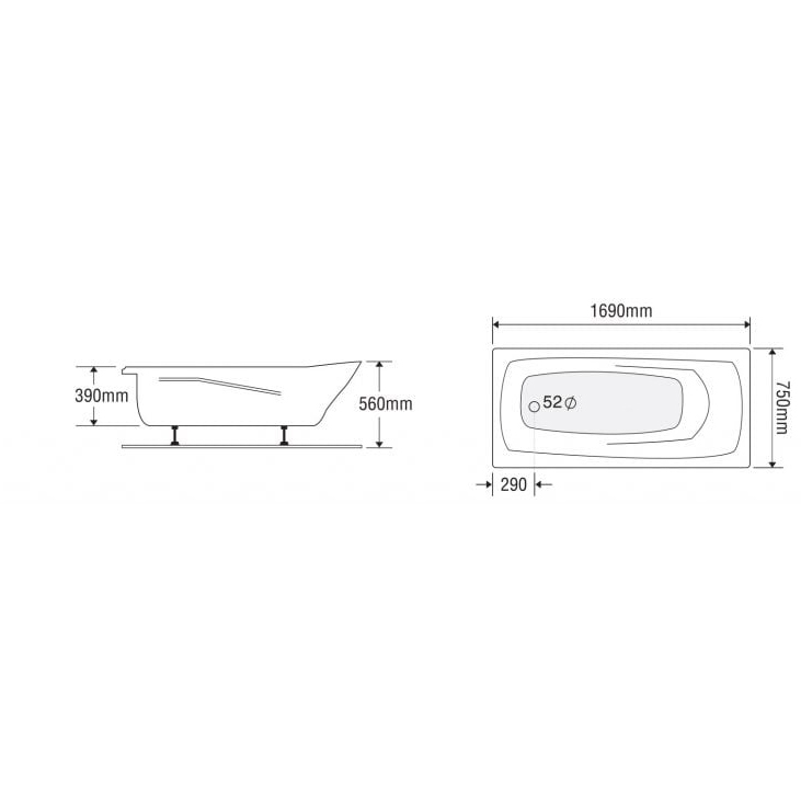 Bồn tắm dài Euroca EU2-1775 dài 1m7 chân yếm đặt sàn