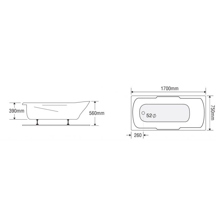 Bồn tắm dài Euroca EU5-1775 dài 1m7 chân yếm đặt sàn