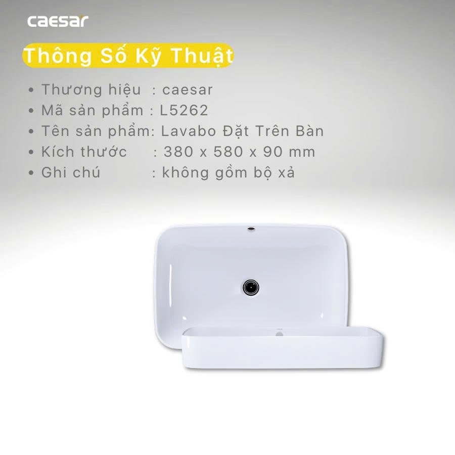 Chậu Rửa Lavabo Caesar L5262 Đặt Bàn 580x380 mm