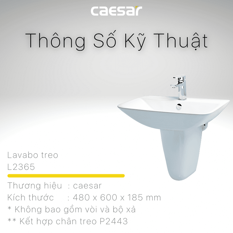 Lavabo chậu rửa mặt Caesar L2365 treo tường chân ngắn