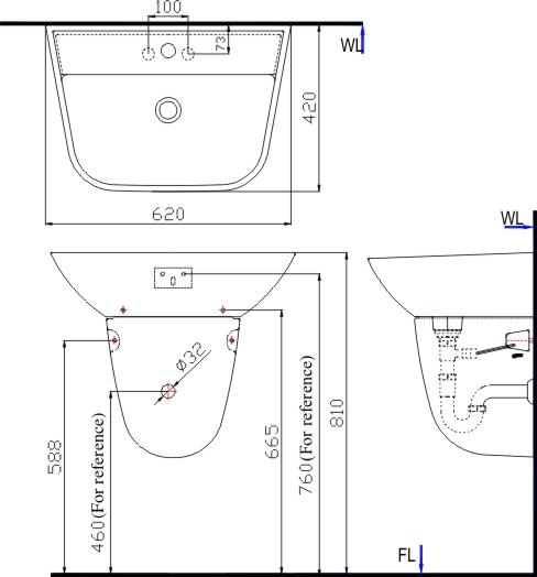 Bản vẽ kỹ thuật Lavabo chậu rửa mặt INAX L-297V treo tường (L297V)
