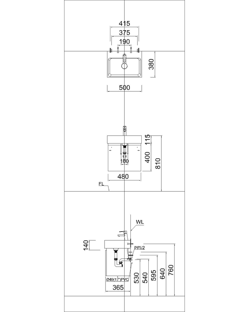 Lavabo tủ Caesar LF5259 + EH05259ATGV
