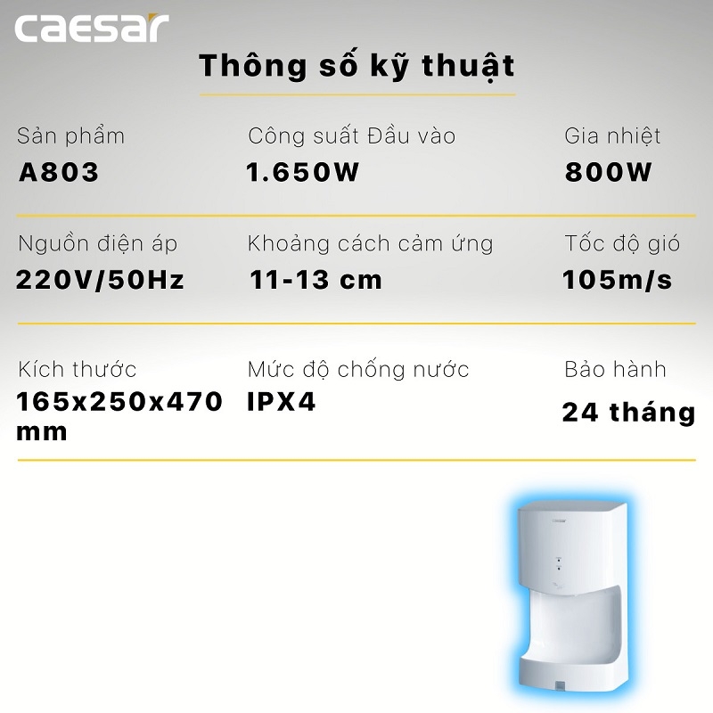 Máy sấy tay Caesar A803 cảm ứng tự động