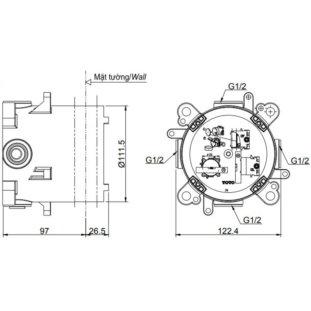 Phụ Kiện TOTO TBN01001B Sen Tắm Âm Tường 3 Đường Nước