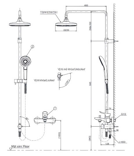 Thân sen tắm TOTO TBW02002BA nóng lạnh