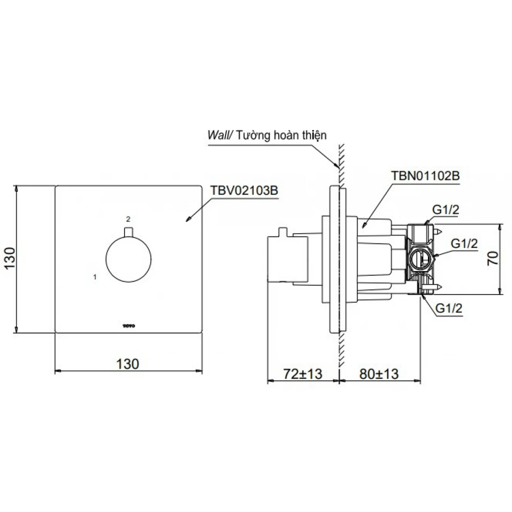 Van Chuyển Hướng TOTO TBV02103B/TBN01102B 2 Đường Nước