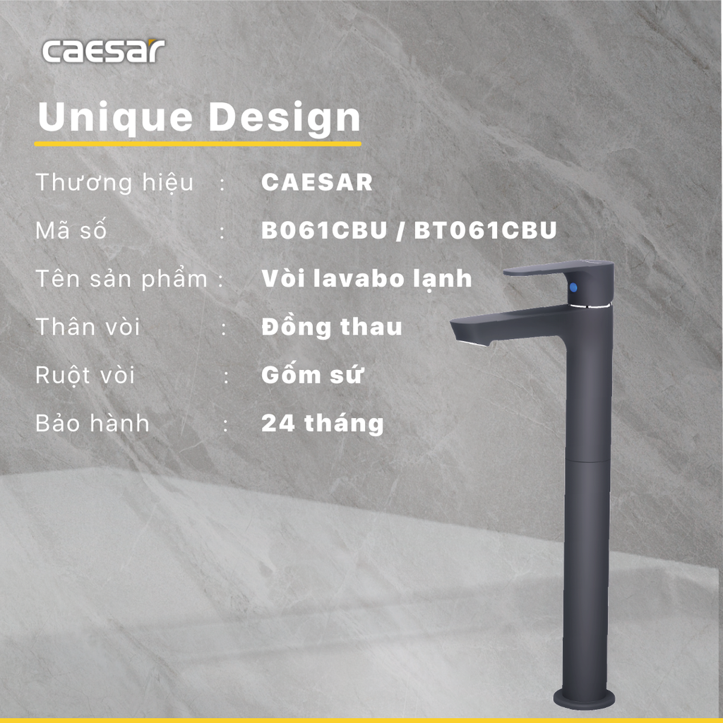 Vòi Lavabo Caesar B061CBU Lạnh Thân Cao Màu Đen