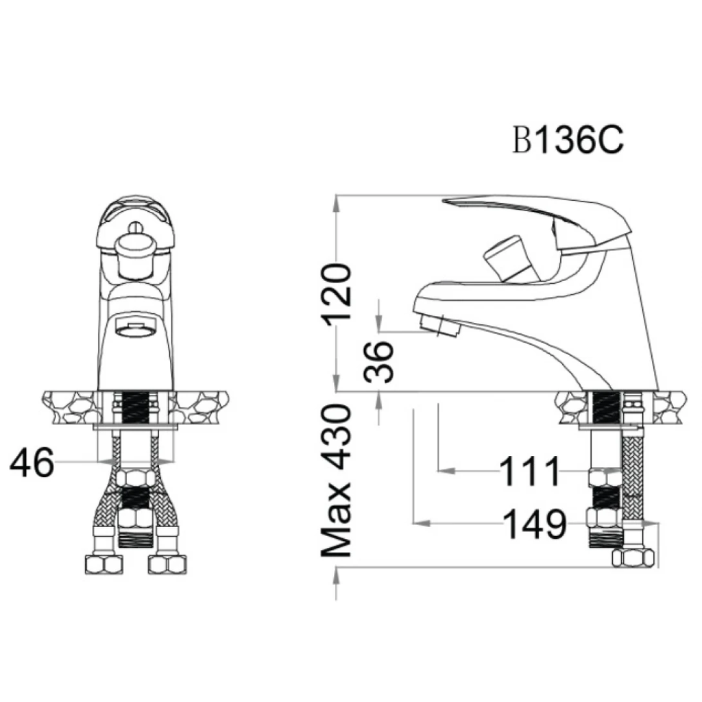 Vòi lavabo chậu rửa mặt Caesar B136CU nóng lạnh kèm tay sen